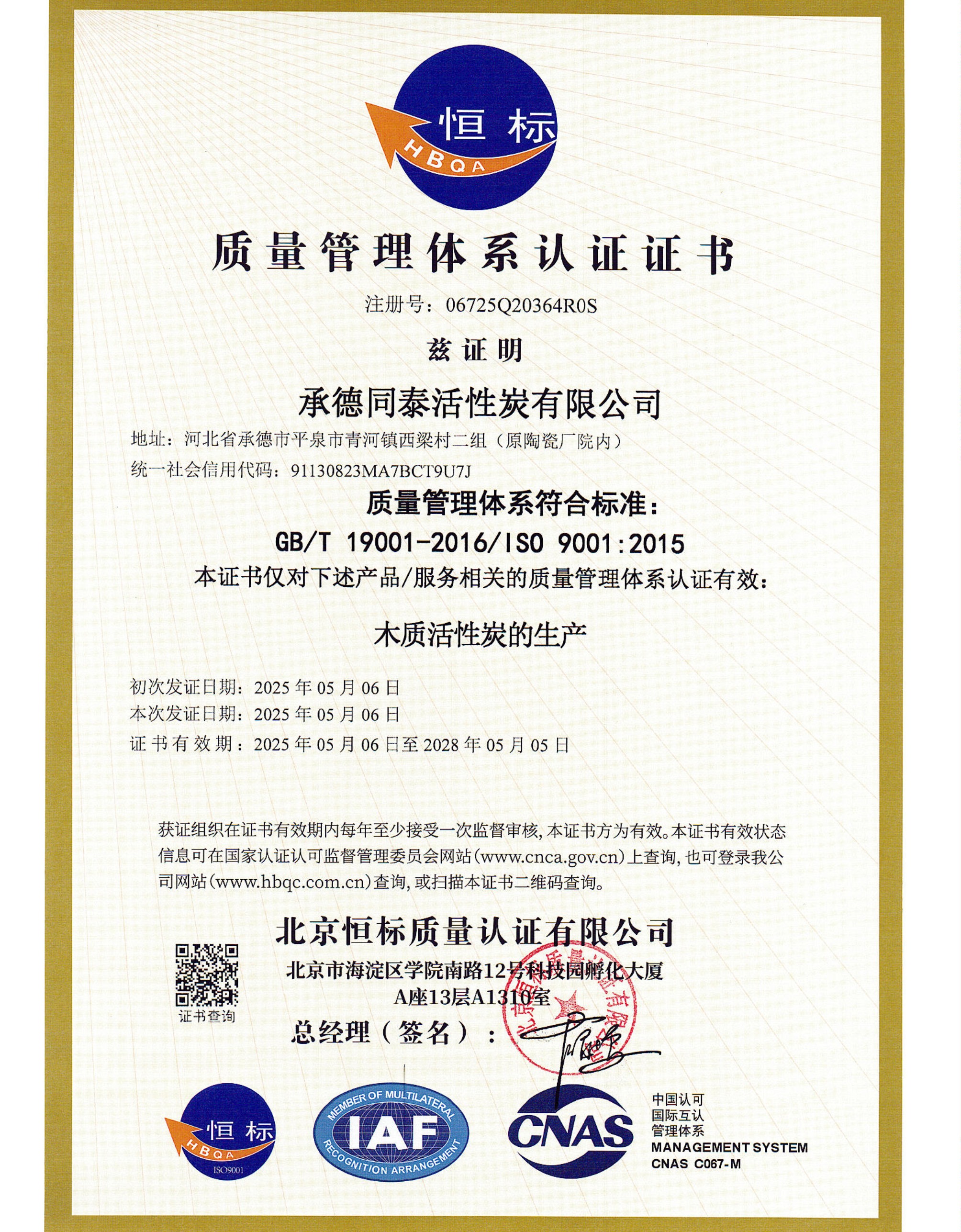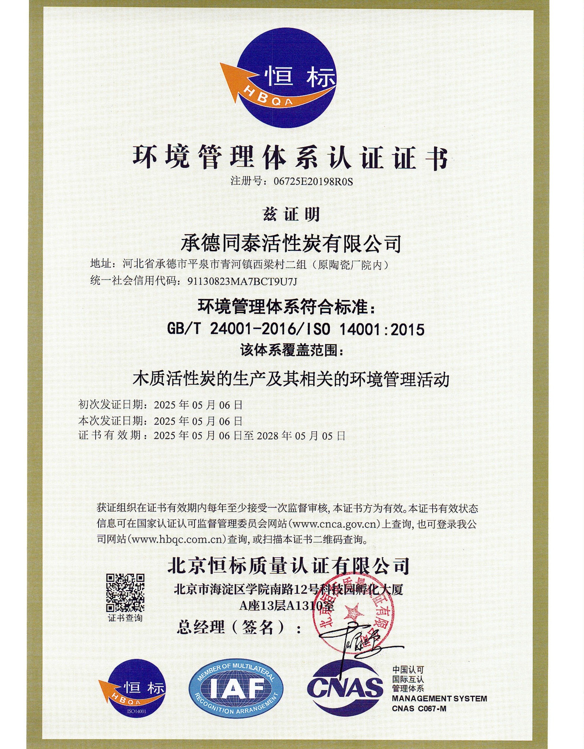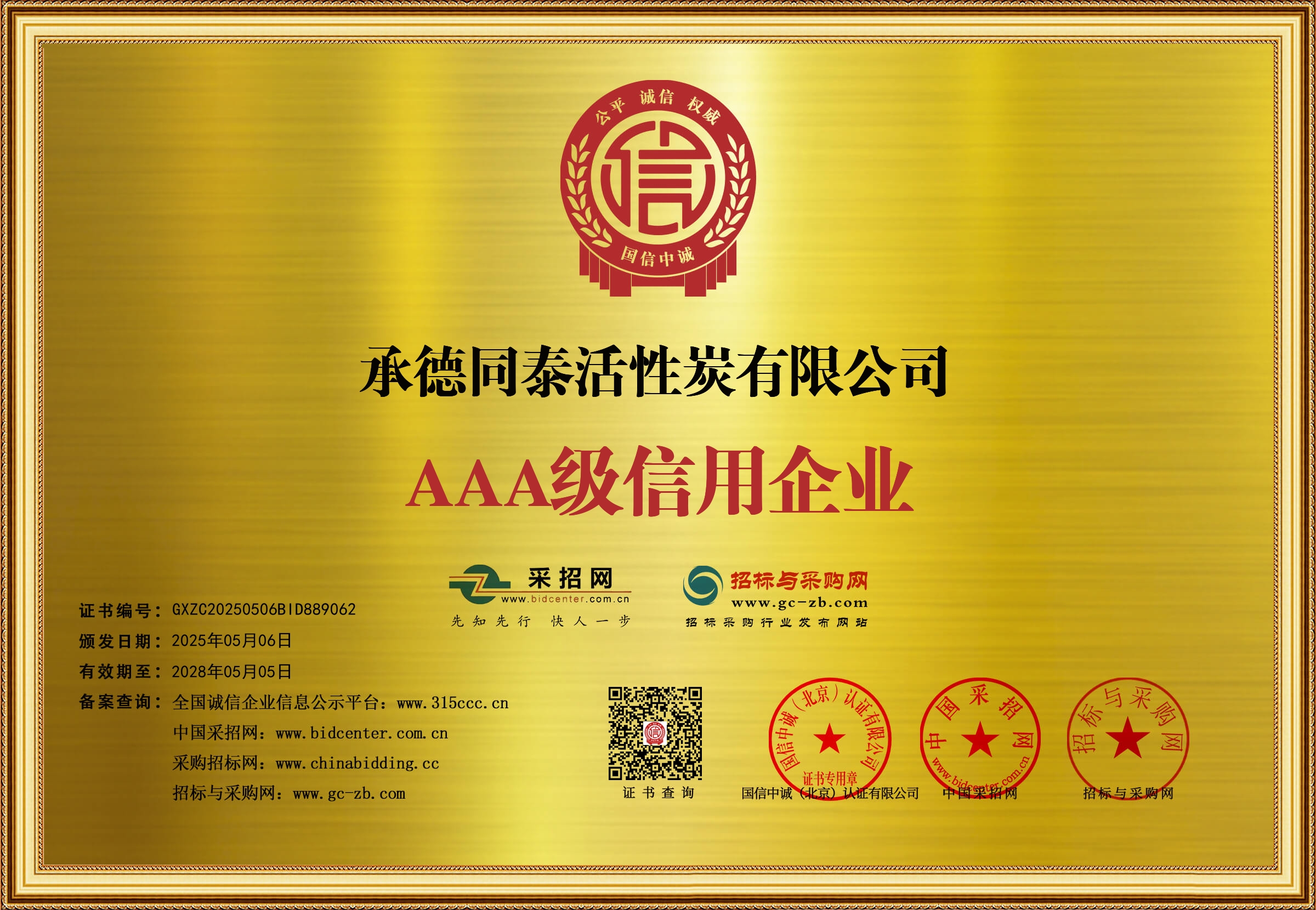 公司主营椰壳、果壳、粉末、蜂窝等活性炭产品,质量可靠,覆盖黄金提炼、水处理、环保、食品医药等多领域,为全球客户提供多元优质供给,赋能行业发展。公司先后通过权威认证机构严格审核,顺利获得质量管理体系认证(ISO9001)、环境管理体系认证、职业健康安全管理体系认证,彰显全周期质量管控、绿色发展与安全保障实力;此外,公司凭借良好的商业信誉、稳健的经营能力及出色的履约表现荣膺3A信用等级,以责任铸品牌、品质赢信赖。凭借过硬的品质与口碑,产品畅销国内外,与众多企业长期合作,让同泰品牌闪耀全球。